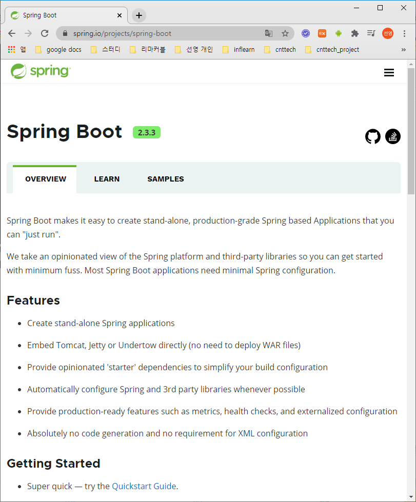 ( Spring boot의 기능을 검색하냐, Spring의 기능을 검색하냐에 따라 어떤 메뉴를 선택할지는 다름 )