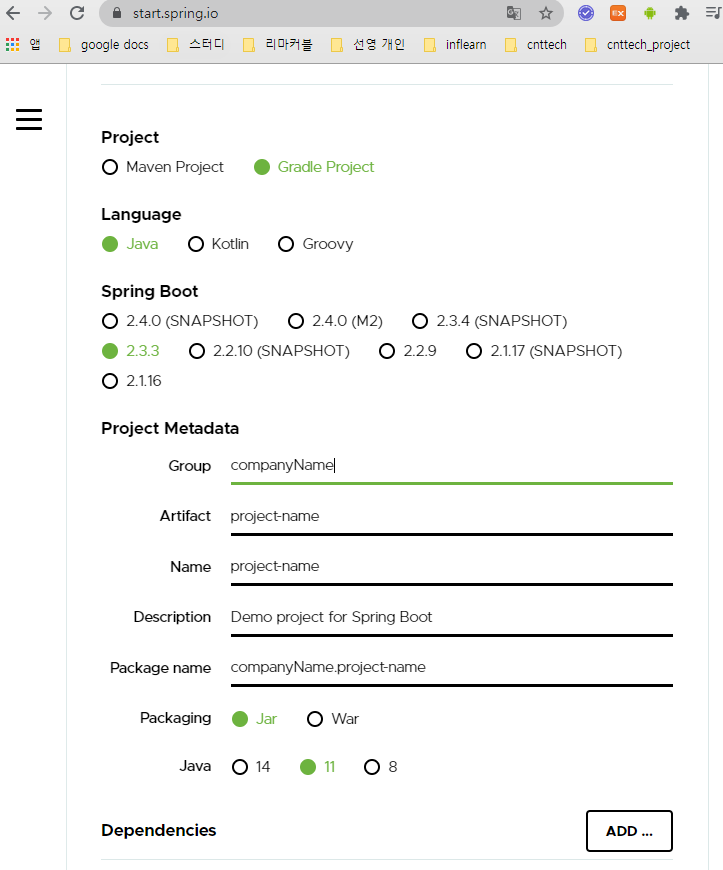 Spring boot 프로젝트 생성, Spring 사이트 이용하기성장과정(dev)/Spring + Java + JPA 2020. 8. 19. 17:31