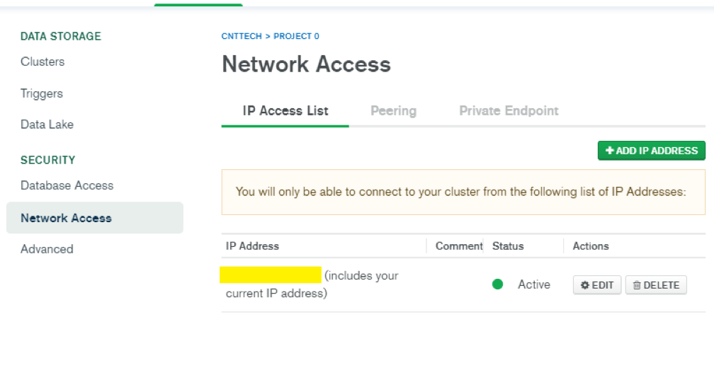 (ADD CURRENT IP ADDRESS 클릭 시 나의 현재 LOCAL IP를 허용해줌)