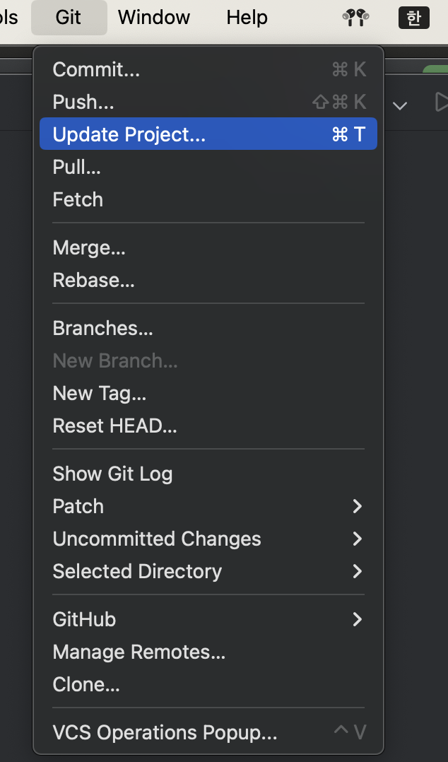 마지막으로, intellij 에서 git Update Project 는 merge 와 rebase 중 선택할 수 있는 기능임