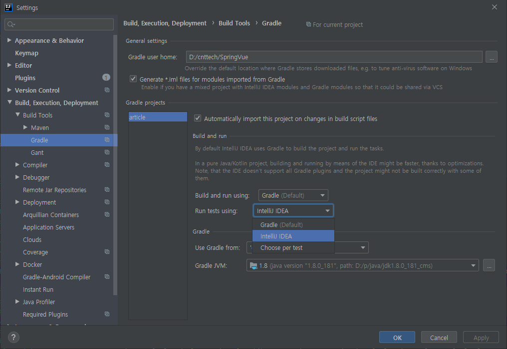 기존에는 Default인 Gradle로 되어있었는데 아무래도 default가 Junit5인가보다.